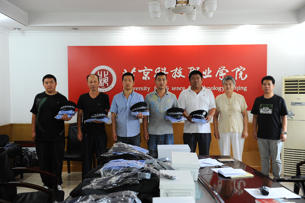 2、校党委常务副书记、分管学校安全工作的第一副院长王茹香(女)向北科院全体保安人员发授标志保安工作神圣职责的工作制服。