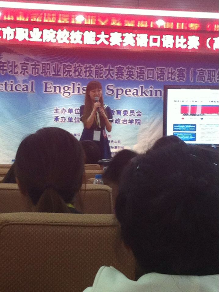 日前,2014年北京市高等职业院校技能大赛落下帷幕。我校共4名指导教师组织11名学生参加了5项技能大赛,最终取得了一个二等奖和两个三等奖的好成绩。其中,国际语言文化学院翁珲珲老师指导2012级商务英语专业学生朱南参加英语口语(专业组)比赛获二等奖;国际语言文化学院刘玉伟老师指导2012旅游管理专业学生李跃文、李欣蕊参加普通话导游服务赛项获得两个三等奖。