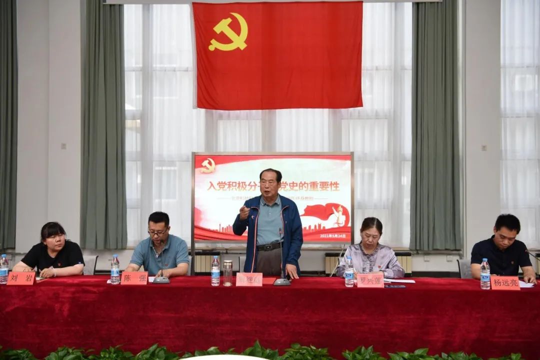 周继庭教授以“入党积极分子学党史的重要性”为主题,从中国共产党建党百年来的风雨历程、中华人民共和国成立后站起来、富起来和进入新时代中国强起来三个方面为在场的学生详细阐述了学习党史的重要性,用自己的亲身经历为大家讲了一堂慷慨激昂生动精彩的党课。