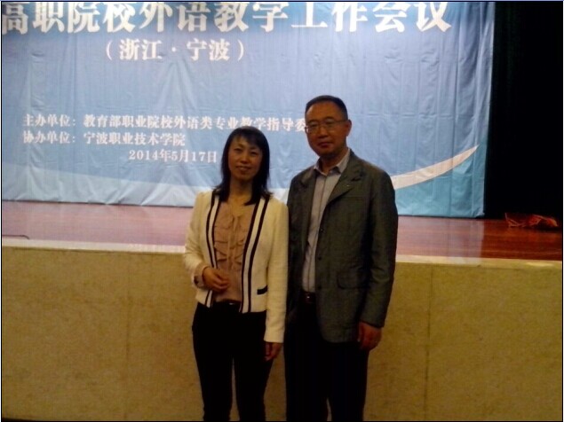 (上图:宁波会议英语系主任翁珲珲和教育部高职外语类教指委秘书长牛健合影 )