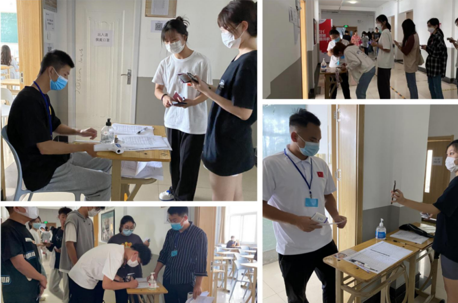教务处对考场内外考务工作进行了分解和布置,提前一周对播音设备进行全方位维护和检测;提前部署防疫工作安排,准备防疫物资,并对考点、考场、通道等考试区域进行清洁和全面消毒;对安检区域进行布置,对考区进行封闭。