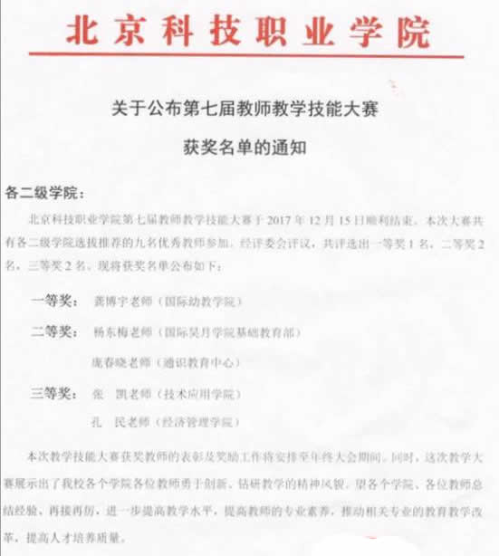 本次教学技能大赛获奖教师的表彰及奖励工作将安排至年终大会期间。同时,这次教学大赛展示出了我校各个学院各位教师勇于创新、钻研教学的精神风貌。望各个学院、各位教师总结经验、再接再厉,进一步提高教学水平,提高教师的专业素养,推动相关专业的教育教学改革,提高人才培养质量。