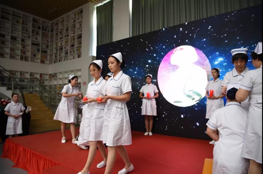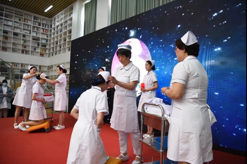 本次会议护理学院常务副院长赵瑛女士为全体护理专业新生主持了庄重肃穆的授帽仪式。来自全国各地的北科护理新生,从黄惟清、张琳琪、宋楠、王莹等前辈们手中接过点燃的蜡烛、佩戴上圣洁的护士帽。一顶顶护士帽、一盏盏烛光,薪火相传的不仅是护理行业的精神,更是救死扶伤、为生命保驾护航的责任和担当。头戴崭新护士帽的新生们,对着南丁格尔的画像庄严宣誓,从此一袭白衣便是志愿献身护理事业的责任,铮铮誓言便是践行使命、呵护职业的承担。
